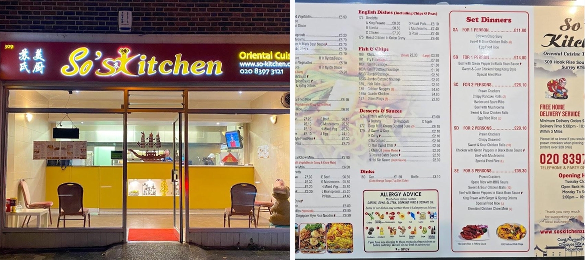 Discover So's Kitchen, the premier Chinese takeaway in Chessington, Surbiton! Enjoy our flavorful dishes like sweet and sour chicken, roast pork, and fried rice at unbeatable prices. Call +44 20 8397 3121 for delicious Chinese cuisine, delivered right to your door!